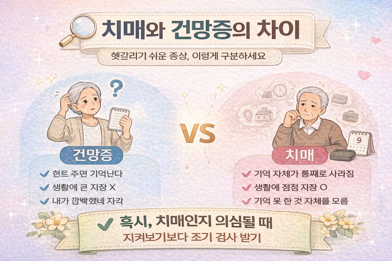 나이가 들면 누구나 “깜빡깜빡”하는 일이 늘어납니다. 그래서 많은 분들이 단순 건망증인지, 치매 초기인지 걱정하게 됩니다.