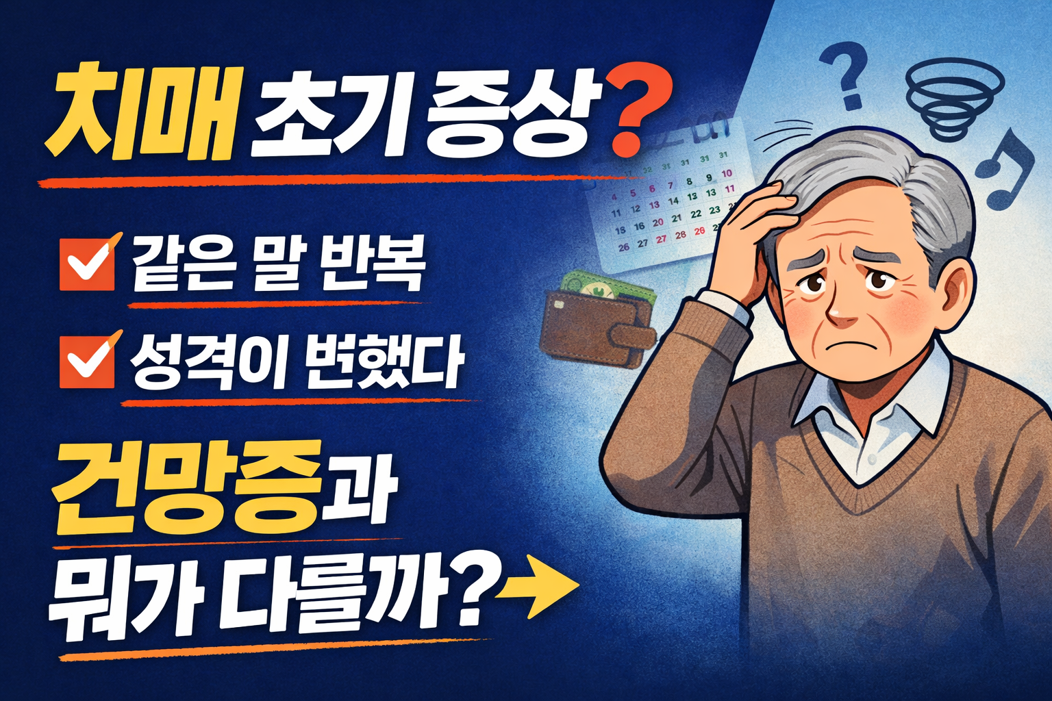 치매 초기 증상은 단순히 “기억력이 나빠지는 것”이 아닙니다.